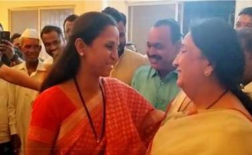 राष्ट्रवादी कांग्रेस पार्टी (शरदचंद्र-पवार) की नेता एवं बारामती की सांसद सुप्रिया सुले और महाराष्ट्र के उपमुख्यमंत्री अजित पवार की पत्नी सुनेत्रा पवार शुक्रवार को बारामती तहसील के एक मंदिर में मिले और एक-दूसरे को गले लगाया।