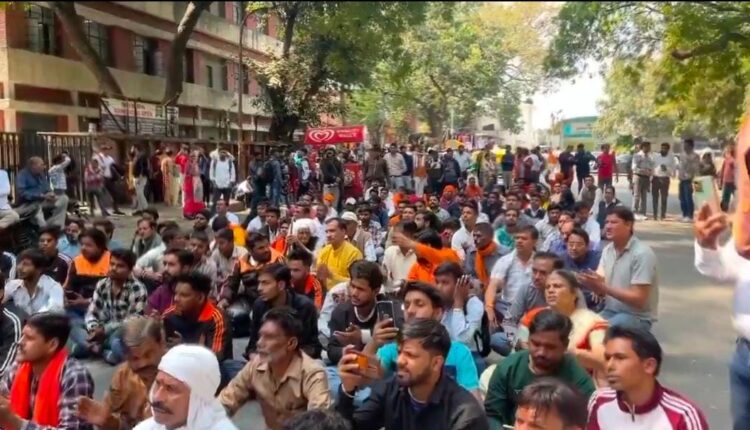 मनोज तोमर का निलंबन वापस लेने को लेकर दिल्ली पुलिस मुख्यालय पर हिंदू संगठनों का प्रदर्शन