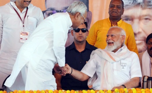 नवादा रैली के कुछ वीडियो वायरल हो गए और कुमार का नाम सोशल मीडिया मंच ‘एक्स’ पर ‘ट्रेंड’ होने लगा। वायरल हुए वीडियो में से एक में कुमार प्रधानमंत्री का अभिवादन करने से पहले हाथ फैलाकर उनके पैरों की ओर झुकते हुए नजर आ रहे हैं।