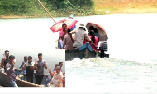 नेत्रवती नदी के बीच पावूर उलिया द्वीप में रहने वाले मतदाता नाव से पहुंचे मतदान केन्द्र
