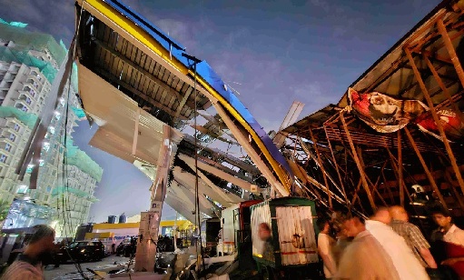 छेड़ा नगर इलाके में एक पेट्रोल पंप के पास लगा होर्डिंग सोमवार को धूल भरी आंधी और बेमौसम बारिश के कारण गिर गया था। इस हादसे में 14 लोगों की मौत हो गई जबकि 75 अन्य लोग घायल हो गए।