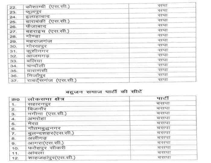 बहुजन समाज पार्टी 38 सीट पर अपने प्रत्याशी उतारेगी तो समाजवादी पार्टी 37 सीट पर प्रत्याशी उतारेगी।