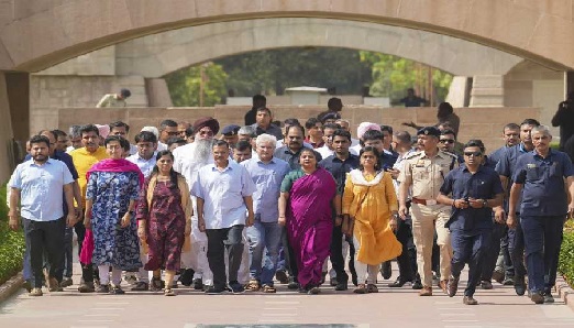 दिल्ली के मुख्यमंत्री केजरीवाल अपने आवास से राजघाट के लिए निकले