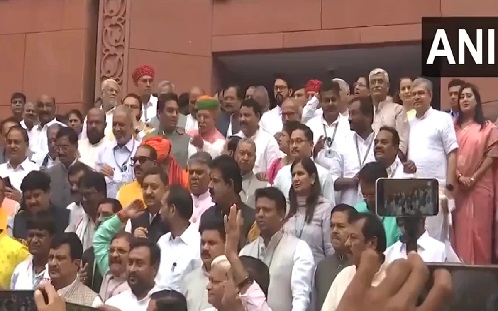 आपातकाल के खिलाफ संसद के बाहर एनडीए नेताओं का विरोध प्रदर्शन, कांग्रेस पर जमकर साधा निशाना