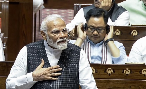 लोकसभा में विपक्ष पर तीखे हमले के एक दिन बाद आज यानी बुधवार को प्रधानमंत्री नरेंद्र मोदी ने राज्यसभा को संबोधित किया। राज्यसभा की कार्यवाही 3 जुलाई को सुबह 11 बजे फिर से शुरू हुई, जबकि निचले सदन में पीएम मोदी के भाषण को लेकर एनडीए और इंडिया ब्लॉक के सांसदों के बीच नोकझोंक के बाद लोकसभा को मंगलवार शाम अनिश्चित काल के लिए स्थगित कर दिया गया था। राज्यसभा में मोदी ने विपक्ष पर जमकर निशाना साधा। हालांकि, राज्यसभा में प्रधानमंत्री के भाषण के बीच विपक्ष ने कांग्रेस के नेतृत्व में वॉकआउट किया। मोदी के भाषण के बाद उच्च सदन में राष्ट्रगीत की धुन बजाये जाने के साथ ही सभापति जगदीप धनखड़ ने राज्यसभा के 264वें सत्र को अनिश्चित काल के लिए स्थगित करने की घोषणा की।प्रधानमंत्री नरेन्द्र मोदी ने राज्यसभा में कहा कि साठ साल बाद देश की जनता ने तीसरी बार किसी सरकार की सत्ता में वापसी कराई है जो असामान्य है। मोदी ने कहा कि हम पर एक-तिहाई सरकार होने का विपक्ष का आरोप सही है, क्योंकि अभी तो हमारी सरकार के 20 साल और होंगे और अब तक तो एक तिहाई ही हुआ है। उन्होंने कहा कि देश की जनता ने दुष्प्रचार को, भ्रम की राजनीति को परास्त कर दिया और भरोसे की राजनीति पर विजय की मुहर लगाई है। इसके साथ ही उन्होंने कहा कि संविधान हमारे लिए केवल अनुच्छेदों का संकलन नहीं है, हम उसके एक-एक शब्द और भावनाओं का आदर करते हैं। उन्होंने कहा कि देश की जनता ने हमें आदेश दिया है और हम भारत की अर्थव्यवस्था को विश्व में तीसरे स्थान पर पहुंचाकर रहेंगे। विपक्ष पर वार करते हुए कहा कि कुछ लोगों को ‘ऑटो पायलट’ पर सरकार चलाने की आदत रही है, लेकिन हम परिश्रम में विश्वास रखते हैं। हम आने वाले सालों में विकास कार्यों की गति और विस्तार बढ़ाएंगे। पिछले दस साल तो हमारे लिए ‘एपेटाइजर’ रहे, ‘मेन कोर्स’ तो अब शुरू हुआ है। हम भारत में विकास का नया अध्याय गढ़ना चाहते हैं। उन्होंने बंगाल को लेकर भी विपक्ष पर वार किया। उन्होंने कहा कि अगर ये चुनाव संविधान बचाने के लिए था तो देश की जनता ने इसके लिए हमें चुना…1977 के चुनाव ने संविधान बचा लिया। राष्ट्रपति अभिभाषण पर राज्यसभा में लाए गए धन्यवाद प्रस्ताव पर प्रधानमंत्री मोदी के जवाब के बीच कांग्रेस की अगुवाई में विपक्ष ने सदन से वॉकआउट किया। इसपर मोदी ने कहा कि जिनमें सत्य का सामना करने का साहस नहीं है, उनमें इन चर्चाओं में उठे प्रश्नों के उत्तर सुनने का साहस नहीं है। वे उच्च सदन का, उच्च सदन की गौरवशाली परंपरा का अपमान कर रहे हैं। सभापति जगदीप धनखड़ ने भी विपक्ष को खूब सुनाया।मोदी ने कहा कि जम्मू कश्मीर में आतंकवाद के खिलाफ हमारी लड़ाई एक प्रकार से अंतिम चरण में है, आतंक के बचे हुए नेटवर्क को हम सख्ती से नेस्तनाबूद 