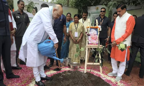 इंदौर। केंद्रीय गृह मंत्री अमित शाह ने मध्य प्रदेश के इंदौर में रविवार को उस अभियान में हिस्सा लिया, जिसका मकसद एक ही दिन में 11 लाख पौधे लगाने का विश्व रिकॉर्ड बनाना है। गृह मंत्री शाह ने कहा कि प्रधानमंत्री नरेन्द्र मोदी द्वारा शुरू किया गया एक पेड़ मां के नाम अभियान जलवायु परिवर्तन की चुनौतियों का उपयुक्त जवाब है। विश्व पर्यावरण दिवस पर पांच जून को मोदी ने एक पेड़ मां के नाम अभियान की शुरुआत की थी। इसके तहत देशभर में लगभग 140 करोड़ पौधे लगाए जाएंगे, जिनमें मध्य प्रदेश में 5.5 करोड़ पौधे लगाए जाएंगे।शाह ने कहा, “विकास हो रहा है और हम सुविधाएं बढ़ा रहे हैं। मोदी जी ने हमें पीछे देखने और आने वाली पीढ़ी के लिए भी काम करने को कहा है। पर्यावरण की चिंता सिर्फ देश के लिए ही नहीं, बल्कि हर जगह अहम हो गई है। कार्बन डाइऑक्साइड और मोनोऑक्साइड ने ओजोन के स्तर को कम कर दिया है और इसकी परत में छेद कर दिया है।” उन्होंने कहा, इससे तापमान में वृद्धि हुई है। जलवायु परिवर्तन को महसूस किया जा रहा है। मोदी जी द्वारा शुरू किया गया अभियान इसका उपयुक्त जवाब है। गृह मंत्री ने कहा कि देश के सबसे स्वच्छ शहर इंदौर में 51 लाख पौधे लगाए जाएंगे। शाह ने सोशल मीडिया मंच ‘एक्स’ पर सुबह में कहा, “आज एक विशेष दिन है, जब इंदौरवासी 11 लाख पौधे लगाकर विश्व रिकॉर्ड बनाने जा रहे हैं।” उन्होंने कहा कि मोदी जी द्वारा शुरू किए गये ‘एक पेड़ मां के नाम’ अभियान के अंतर्गत वह भी आज इंदौर (मध्य प्रदेश) के रेवती रेंज के बीएसएफ परिसर में पौधे लगाएंगे।शाह ने कहा कि पर्यावरण संरक्षण मोदी सरकार की सबसे बड़ी प्राथमिकताओं में से एक रहा है और वृक्षारोपण को सरकार ने जन-जन की चेतना का विषय बनाया है। एक अधिकारी ने बताया कि शनिवार शाम से ही सीमा सुरक्षा बल (बीएसएफ) अकादमी के रेवती रेंज में गड्ढे खोदे गए और आज सुबह प्रदेश सरकार के मंत्री कैलाश विजयवर्गीय द्वारा भूमि पूजन किए जाने के बाद पौधे लगाने का काम शुरू हो गया। इंदौर के महापौर पुष्यमित्र भार्गव ने बताया कि दोपहर तक 11 लाख में से सात लाख पौधे लगाए जा चुके हैं। मध्य प्रदेश के मुख्यमंत्री मोहन यादव ने छह जुलाई को राज्य में एक पेड़ मां के नाम अभियान की शुरुआत की थी।