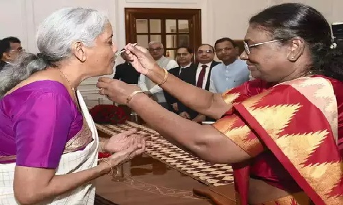 राष्ट्रपति द्रौपदी मुर्मू ने बजट 2024 से पहले वित्त मंत्री निर्मला सीतारमण को दही-चीनी खिलाई