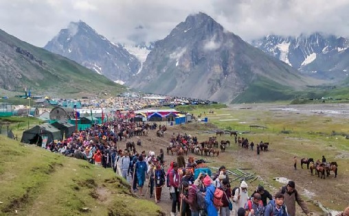 जम्मू आधार शिविर से 1,800 से अधिक तीर्थयात्री अमरनाथ गुफा मंदिर के लिए रवाना हुए