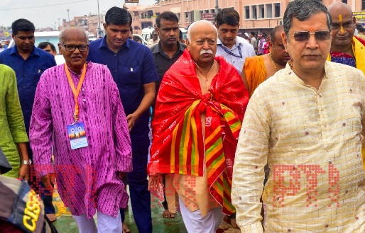 राष्ट्रीय स्वयंसेवक संघ (आरएसएस) प्रमुख मोहन भागवत ने शुक्रवार को जगन्नाथ मंदिर में पूजा अर्चना की। सेवादारों के अनुसार, आरएसएस प्रमुख ने मंदिर के अंदर करीब आधा घंटा बिताया और पुजारियों से बातचीत की।