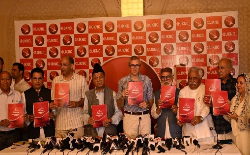 नेशनल कॉन्फ्रेंस (एनसी) ने सोमवार को जम्मू-कश्मीर में आगामी विधानसभा चुनाव के लिए अपना घोषणापत्र जारी किया। यह दस्तावेज़ पार्टी उपाध्यक्ष उमर अब्दुल्ला द्वारा एक प्रेस वार्ता के दौरान घोषणापत्र समिति के सदस्यों सहित वरिष्ठ नेताओं की उपस्थिति में जारी किया गया था। इस दौरान उन्होंने कहा कि यह सिर्फ चुनाव का दस्तावेज नहीं है. जब सभी इसे पढ़ेंगे तो समझेंगे कि यह पूरी तरह शासन-प्रशासन का एजेंडा है। यह पांच साल का रोडमैप है और इसे लागू करने से जम्मू-कश्मीर में बदलाव आएगा। पहले भी कई लोगों ने बदलाव की बात की, लेकिन हमें केवल धोखा मिला।उमर अब्दुल्ला ने कहा कि जम्मू-कश्मीर में बेरोजगारी की स्थिति हम सभी जानते हैं। भर्ती प्रक्रिया में धोखाधड़ी हुई और युवाओं को नौकरी नहीं मिली। हम युवाओं से व्यापक वादे कर रहे हैं और बेरोजगारी के मुद्दे का समाधान करने जा रहे हैं। उन्होंने आगे कहा कि हम यह भी करेंगे पानी और बिजली के मुद्दे को संबोधित करें और 200 यूनिट तक बिजली मुफ्त देंगे। कुछ लोग इससे अधिक का वादा करेंगे लेकिन यह फायदेमंद नहीं है क्योंकि वे भविष्य में सत्ता में नहीं रहने वाले हैं। जम्मू-कश्मीर नेशनल कॉन्फ्रेंस के मुख्य प्रवक्ता तनवीर सादिक ने कहा कि हमारी गारंटी सामान्य स्थिति बहाल करने की है। हम भारत और पाकिस्तान के बीच बातचीत के लिए माहौल को बेहतर बनाने की कोशिश करेंगे। हम उन सभी राजनीतिक नेताओं और युवाओं को रिहा करेंगे जो अलग-अलग हैं। हम उन लोगों की भी मदद करने का प्रयास करेंगे जिनके पासपोर्ट सत्यापन लंबित हैं।अनुच्छेद 370 की बहाली और जम्मू-कश्मीर के राज्य के दर्जे के साथ-साथ 2000 में तत्कालीन विधानसभा द्वारा पारित स्वायत्तता प्रस्ताव का कार्यान्वयन नेशनल कॉन्फ्रेंस की आगामी चुनावों के लिए अपने घोषणापत्र में घोषित 12 गारंटियों में से एक है। घोषणापत्र जारी करते हुए नेकां उपाध्यक्ष उमर अब्दुल्ला ने कहा कि पार्टी केवल वही वादे कर रही है जिन्हें वह पूरा कर सकती है। उन्होंने घोषणापत्र को एनसी का विज़न दस्तावेज़ और शासन के लिए एक रोडमैप बताया। घोषणापत्र में 12 व्यापक वादे किए गए हैं, जिनमें 2000 में जम्मू और कश्मीर विधानसभा द्वारा पारित स्वायत्तता संकल्प के पूर्ण कार्यान्वयन का प्रयास भी शामिल है। एनसी दस्तावेज़ में कहा गया है, “हम (अनुच्छेद) 370-35ए और 5 अगस्त, 2019 से पहले की राज्य का दर्जा बहाल करने का प्रयास करते हैं।”