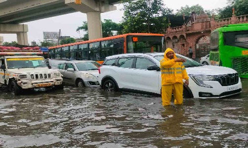 दिल्ली में भारी बारिश के बाद ट्रैफिक जाम, शहर भर में जलभराव, आईएमडी ने दी बारिश की चेतावनी