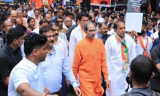 छत्रपति शिवाजी महाराज की प्रतिमा गिरने की घटना को लेकर महाराष्ट्र में विपक्ष जमकर प्रदर्शन कर रहा है। रविवार को महाविकास आघाडी गठबंधन ने ‘जूते मारो आंदोलन’ निकाला, जिसमें जिसमें शिवसेना (UBT) प्रमुख उद्धव ठाकरे, पार्टी नेता आदित्य ठाकरे और संजय राउत, महाराष्ट्र कांग्रेस प्रमुख नाना पटोले और शरद पवार शामिल हुए। दक्षिण मुंबई के हुतात्मा चौक से गेटवे ऑफ इंडिया तक निकाले गए इस मार्च में सरकार के खिलाफ नारेबाजी की गयी। इतना ही नहीं एमवीए नेताओं ने प्रतिमा गिरने के लिए केंद्र और राज्य सरकार की आलोचना भी की।‘गेटवे ऑफ इंडिया’ पर एक सभा को संबोधित करते हुए उद्धव ठाकरे ने कहा, ‘क्या आपने (प्रधानमंत्री नरेन्द्र मोदी) की माफी में अहंकार को देखा? इसमें अहंकार की बू आ रही थी। एक उपमुख्यमंत्री मुस्कुरा रहे थे। प्रधानमंत्री किस बात के लिए माफी मांग रहे थे? उस प्रतिमा के लिए जिसका उन्होंने आठ महीने पहले उद्घाटन किया था? उसमें शामिल भ्रष्टाचार के लिए? एमवीए काडरों को शिवाजी महाराज का अपमान करने वाली ताकतों को हराने के लिए मिलकर काम करना चाहिए। प्रतिमा का गिरना महाराष्ट्र की आत्मा का अपमान है।’ बता दें, शुक्रवार को पालघर में अपने संबोधन के दौरान पीएम मोदी ने इस घटना को लेकर महाराष्ट्र के लोगों से माफी मांगी थी। उन्होंने कहा, ‘आज, मैं उनके चरणों में सिर झुकाता हूं और अपने देवता से माफी मांगता हूं।’शरद पवार ने विरोध मार्च में कहा, ‘सिंधुदुर्ग में छत्रपति शिवाजी महाराज की प्रतिमा का गिरना भ्रष्टाचार का एक उदाहरण है। यह सभी शिवाजी प्रेमियों का अपमान है।’ कांग्रेस की महाराष्ट्र इकाई के प्रमुख नाना पटोले ने कहा, ‘प्रधानमंत्री ने राज्य में होने वाले चुनाव को ध्यान में रखते हुए माफी मांगी है।’ शिवाजी के वंशज एवं कोल्हापुर से कांग्रेस सांसद शाहू छत्रपति ने कहा कि मराठा योद्धा की गरिमा को हर कीमत पर बनाए रखा जाना चाहिए।