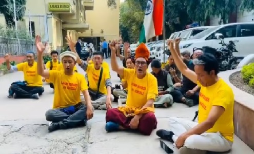 नयी दिल्ली। लद्दाख को छठी अनुसूची में शामिल करने सहित विभिन्न मांगों की लेकर दिल्ली आए जलवायु कार्यकर्ता सोनम वांगचुक को जंतर-मंतर पर आंदोलन की अनुमति नहीं मिलने पर रविवार को लद्दाख भवन में ही अनशन पर बैठ गए। वह दिल्ली में लद्दाख भवन में ही ठहरे हुए हैं।वांगचुक ने अनशन शुरू करने से पहले मीडिया के साथ संक्षिप्त बातचीत में कहा कि अपने आंदोलन के लिए कोई स्थान न मिलने पर उन्हें लद्दाख भवन में ही विरोध प्रदर्शन करने के लिए मजबूर होना पड़ा। वांगचुक सहित करीब 18 लोग लद्दाख भवन के गेट के पास बैठे हैं और ‘‘हम होंगे कामयाब’’ गीत गा रहे थे तथा ‘भारत माता की जय’, ‘जय लद्दाख’ और ‘लद्दाख बचाओ, हिमालय बचाओ’ जैसे नारे लगा रहे थे।वांगचुक ने सोशल मीडिया मंच ‘एक्स’ पर रविवार सुबह जारी पोस्ट में कहा कि उन्हें जंतर-मंतर पर अनशन करने की अनुमति नहीं दी गई है। उन्होंने कहा, ‘‘एक और अस्वीकृति, एक और हताशा। अंततः आज सुबह हमें विरोध प्रदर्शन के लिए आधिकारिक रूप से तय स्थान के लिए यह अस्वीकृति पत्र मिला।’’ जलवायु कार्यकर्ता वांगचुक ‘दिल्ली चलो पदयात्रा’ का नेतृत्व कर रहे हैं, जो एक महीने पहले लेह से शुरू हुई थी।मार्च का आयोजन ‘लेह एपेक्स बॉडी’ ने किया है, जो कारगिल डेमोक्रेटिक अलायंस के साथ मिलकर पिछले चार वर्ष से लद्दाख को राज्य का दर्जा दिलाने और संविधान की छठी अनुसूची में शामिल करने के लिए आंदोलनरत है। ज्यादातर प्रदर्शनकारी शनिवार को लद्दाख लौट गए, जबकि शेष प्रदर्शनकारी वांगचुक के साथ अनशन में शामिल होने के लिए यहीं रुके हैं।