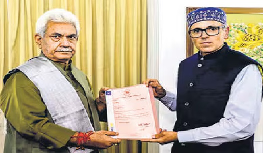 नवनिर्वाचित मुख्यमंत्री और नेशनल कॉन्फ्रेंस के उपाध्यक्ष उमर अब्दुल्ला ने जम्मू-कश्मीर के एलजी मनोज सिन्हा से मुलाकात की। हाल ही में 8 अक्टूबर को संपन्न विधानसभा चुनावों में कांग्रेस के साथ उनकी पार्टी के नेतृत्व वाले गठबंधन को बहुमत के साथ जीत हासिल होने के बाद उन्होंने सरकार बनाने के लिए समर्थन पत्र सौंपा। उन्होंने कहा कि पूरी प्रक्रिया एलजी और केंद्र के पक्ष में है। मंगलवार तक पूरा होने पर वह बुधवार (16 अक्टूबर) को शपथ लेंगे।