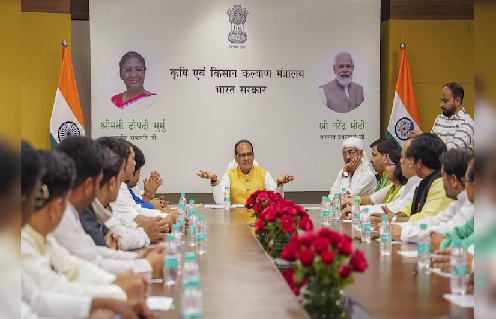 केंद्रीय कृषि एवं किसान कल्याण मंत्री शिवराज सिंह चौहान ने गुरुवार को किसानों और किसान संघ के साथ बैठक की। इस मुलाकात के बाद शिवराज ने कहा कि हमने सभी आमंत्रितों से किसानों और खेती से जुड़े मुद्दों पर गंभीर चर्चा की। हमने उन्हें सरकार द्वारा उठाए गए नए कदमों और हुई प्रगति के बारे में बताया और बदले में, उन्होंने हमें महत्वपूर्ण प्रतिक्रिया दी। मंत्री ने कहा कि राज्य सरकारों से संबंधित कुछ मुद्दे उनके साथ साझा किए जाएंगे और केंद्र सरकार से संबंधित कुछ मुद्दों को हम हल करेंगे। यह बातचीत बहुत मददगार साबित हुई क्योंकि हमें किसानों से ही जमीनी हकीकत पता चल रही है।केंद्रीय कृषि मंत्री ने कहा कि सरकार महाराष्ट्र, कर्नाटक और मध्य प्रदेश से सोयाबीन की फसल न्यूनतम समर्थन मूल्य (एमएसपी) पर खरीदेगी। उन्होंने यह भी कहा कि सरकार ने दूसरे देशों से तेल पर आयात शुल्क बढ़ा दिया है। उन्होंने कहा कि यदि किसी राज्य ने हमसे कहा, तो हमने उनकी सोयाबीन की फसल खरीदी। हमने महाराष्ट्र, कर्नाटक और मध्य प्रदेश को एमएसपी पर सोयाबीन खरीदने का आश्वासन दिया है… जब हमारे तिलहन की कीमतें गिर गईं, तो हमने अन्य देशों से प्राप्त तेल पर आयात शुल्क बढ़ाने का फैसला किया। 27.5 प्रतिशत आयात शुल्क लगाया गया। सोयाबीन सहित तिलहन की कीमतें बढ़ने लगीं और मुझे उम्मीद है कि जल्द ही ये एमएसपी तक पहुंच जाएंगी। चर्चा का उद्देश्य किसान समुदायों को प्रभावित करने वाले महत्वपूर्ण मुद्दों को संबोधित करना और कृषि क्षेत्र में आने वाली चुनौतियों का विश्लेषण करना था। इससे पहले बुधवार को केंद्रीय मंत्री शिवराज सिंह चौहान ने कहा कि प्रधानमंत्री नरेंद्र मोदी का संकल्प है कि किसानों की फसल उनकी लागत से कम से कम 50 फीसदी अधिक मुनाफे पर खरीदी जाएगी। उन्होंने कहा कि पीएम मोदी का संकल्प था कि किसानों से उनकी फसल उत्पादन लागत से कम से कम 50 फीसदी मुनाफे पर खरीदी जाएगी।