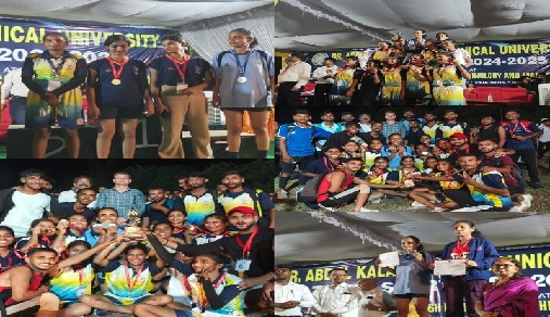 बीकेटी लखनऊ बख्शी का तालाब स्थित एसआर ग्रुप ऑफ इंस्टीट्यूशन्स के छात्रों ने बीएसएसआईटीएम, लखनऊ में आयोजित डॉ. एपीजे अब्दुल कलाम टेक्निकल यूनिवर्सिटी स्पोर्ट्स फेस्ट 2024-25 में शानदार प्रदर्शन करते हुए कई पदक अपने नाम किए। खो-खो महिला वर्ग में अर्पिता श्रीवास्तव, निशा, श्रस्टी सिंह, अंतिमा, मुस्कान सिंह, अंशु सिंह, अर्पिता यादव, ऐश्वर्या साहू, ऐश्वर्या सक्सेना, ग्रेसी तिर्की, संध्या और सपना गौतम की टीम ने स्वर्ण पदक जीता। कुमारी वंदना ने 100 मीटर और 200 मीटर महिला वर्ग में स्वर्ण पदक हासिल किया, जबकि 4*100 मीटर पुरुष रिले रेस में मृणाल सिंह, ऋषभ सिंह, अभय सिंह और योगेश यादव की टीम ने स्वर्ण पदक अपने नाम किया। महिला 4*100 मीटर रिले रेस में कुमारी वंदना, अर्पिता श्रीवास्तव, श्रुति दीक्षित और मुस्कान सिंह की टीम ने कांस्य पदक प्राप्त किया। वहीं, 400 मीटर महिला रेस में अर्पिता श्रीवास्तव ने रजत पदक जीता और शतरंज में युथिका मिश्रा ने रजत पदक हासिल किया। सभी विजेताओं को बीएसएसआईटीएम लखनऊ के चेयरमैन आनंद शेखर सिंह द्वारा पदक और प्रमाण पत्र प्रदान किए गए। इस अवसर पर एसआर ग्रुप ऑफ इंस्टीट्यूशन्स के चेयरमैन पवन सिंह चौहान और वाइस चेयरमैन पियूष सिंह चौहान ने सभी विजेताओं को बधाई दी और जीवन के हर क्षेत्र में इसी प्रकार आगे बढ़ने का संदेश दिया।