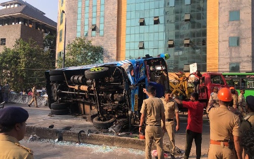 कोझिकोड में यात्री बस पलटी, 50 से अधिक लोग घायल