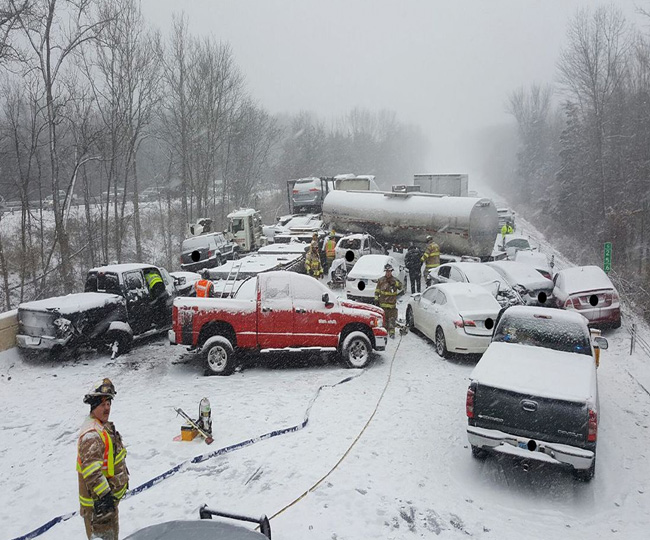 Bomb Cyclone – घंटों बर्फीले तूफान में फंसे रहे लोग, वाहन आपस में भिड़े