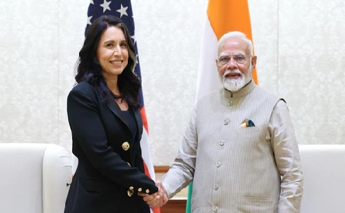 प्रधानमंत्री नरेंद्र मोदी ने अपनी भारत यात्रा के दौरान अमेरिकी राष्ट्रीय खुफिया निदेशक (डीएनआई) तुलसी गबार्ड से मुलाकात की। राष्ट्रीय राजधानी में आयोजित इस बैठक में भारत और अमेरिका के बीच द्विपक्षीय सहयोग, खुफिया जानकारी साझा करने और रणनीतिक साझेदारी पर ध्यान केंद्रित किया गया। नई दिल्ली में अमेरिकी राष्ट्रीय खुफिया निदेशक तुलसी गबार्ड से मुलाकात की और उन्हें महाकुंभ के दौरान एकत्र किया गया गंगा जल भेंट किया। 26 फरवरी को संपन्न हुए इस धार्मिक समागम में प्रयागराज में त्रिवेणी संगम में 660 मिलियन से अधिक लोग शामिल हुए, जिससे यह दुनिया का सबसे बड़ा मानव समागम बन गया। तुलसी गब्बार्ड ने कहा कि टैरिफ के मुद्दे पर भारत और अमेरिका के बीच शीर्ष स्तर पर सीधी बातचीत होती है। अमेरिकी टैरिफ व्यवस्था पर अमेरिकी राष्ट्रीय खुफिया निदेशक तुलसी गबार्ड ने कहा कि मैंने भारतीय सरकारी अधिकारियों से सुना है कि यहां हमारे आर्थिक संबंधों को मजबूत करने की अधिक संभावनाएं देखने का अवसर है। जब हम टैरिफ को देखते हैं तो मुझे यह देखकर खुशी हुई कि वे इसे सकारात्मक दृष्टिकोण से देख रहे हैं, न कि केवल नकारात्मक दृष्टिकोण से। तुलसी गबार्ड ने कहा कि पिछले कुछ दिनों में मैंने जिन भारतीय सरकारी अधिकारियों से बात की है, उनसे मैंने जो सुना है, उसके अनुसार यहां एक अवसर है।अमेरिकी रक्षा मंत्री राजनाथ सिंह के साथ अमेरिकी राष्ट्रीय खुफिया निदेशक तुलसी गबार्ड की बैठक के दौरान भारत ने अमेरिका में खालिस्तानी संगठन एसएफजे (सिख फॉर जस्टिस) द्वारा की जा रही भारत विरोधी गतिविधियों का मुद्दा उठाया। भारत ने अपनी चिंता व्यक्त की और अमेरिकी प्रशासन से इस गैरकानूनी संगठन के खिलाफ कड़ी कार्रवाई करने को कहा। अमेरिकी राष्ट्रीय खुफिया निदेशक तुलसी गबार्ड ने कहा कि चाहे विश्व के विभिन्न भागों में युद्ध क्षेत्रों में सेवा करना हो या वर्तमान में हमारे सामने आने वाली चुनौतियां हों, यह भगवान कृष्ण द्वारा अर्जुन को भगवद् गीता में दी गई शिक्षाएं ही हैं, जिनका मैं अपने सबसे अच्छे और सबसे बुरे समय में सहारा लेती हूं।