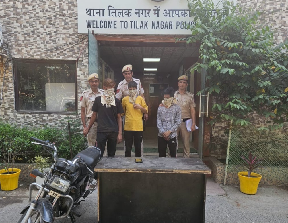 तिलक नगर थाना पुलिस ने तीन लुटेरों को दबोचा, छीना हुआ मोबाइल और चोरी की बाइक बरामद
