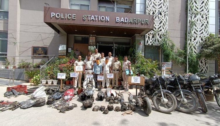 बदरपुर थाना पुलिस ने पकड़े दो वाहन चोर, चार मामले सुलझे, 14 चोरी की मोटरसाइकिलें बरामद
