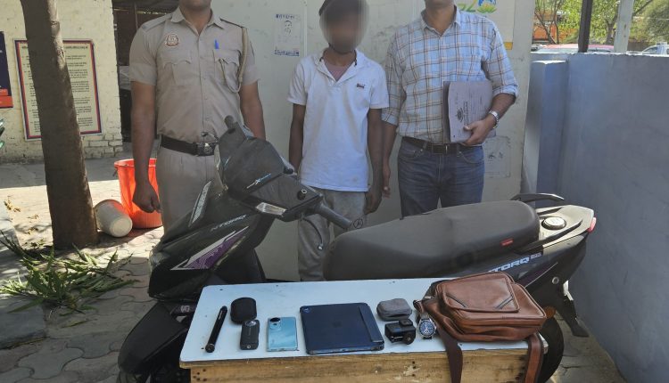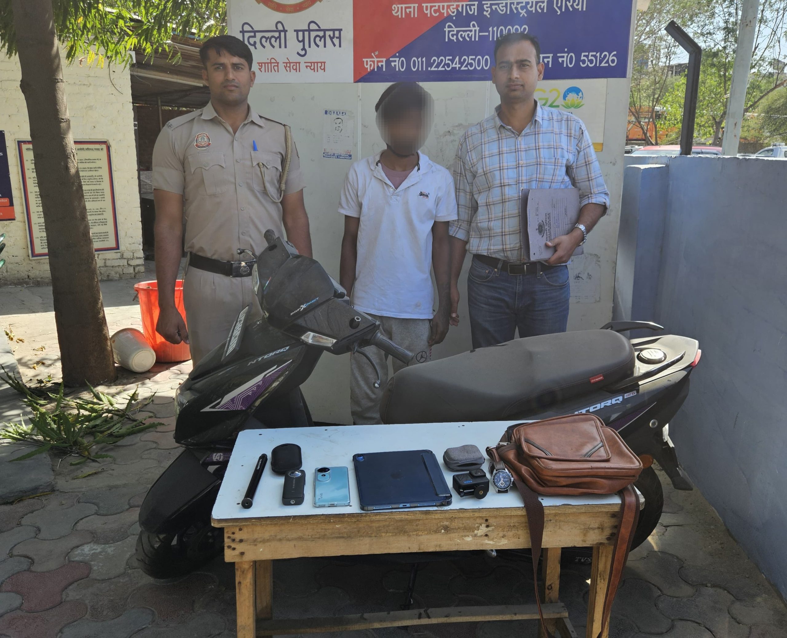 नई दिल्ली: दिल्ली पुलिस ने ठक-ठक गिरोह के एक सदस्य को गिरफ्तार कर एक चोरी की गुत्थी सुलझा ली है। आरोपी से 3,15,000 रुपये की कीमती चीजें, जिसमें एप्पल आईपैड, मोबाइल, दो हाई-एंड कैमरे और एक फॉसिल घड़ी शामिल हैं, बरामद की गईं। इसके साथ ही अपराध में इस्तेमाल की स्कूटी भी जब्त की गई है।