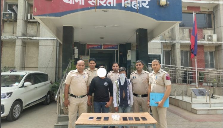 दक्षिण-पूर्व जिला के डीसीपी रवि कुमार सिंह ने बताया कि बीते शुक्रवार को गश्त के दौरान कांस्टेबल विजेंद्र और कांस्टेबल नरेंद्र ने एच पॉकेट, सरिता विहार में अंकित शर्मा को संदिग्ध हालत में देखा। तलाशी के दौरान उसके पास से एक बटन चाकू और ओप्पो कंपनी का एक छीना हुआ मोबाइल फोन बरामद हुआ। यह फोन ओखला इलाके से छीना गया था। इसके बाद थाना सरिता विहार में आर्म्स एक्ट के तहत मामला दर्ज किया गया। पूछताछ में अंकित ने खुलासा किया कि वह चोरी और छीने गए फोन विशाल उर्फ विष्णु को बेचता था। उसकी निशानदेही पर पुलिस ने विशाल उर्फ विष्णु को भी दबोच लिया। विशाल के कब्जे से छह अन्य चोरी के मोबाइल फोन बरामद किए गए।