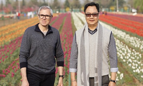 किरेन रिजिजू ने सीएम उमर अब्दुल्ला के साथ ट्यूलिप गार्डन की सैर की, भड़क गईं महबूबा मुफ्ती