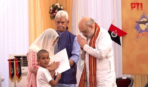 अमित शाह ने कठुआ में बीएसएफ जवानों की बहादुरी को सराहा, शहीदों के परिजनों से की मुलाकात