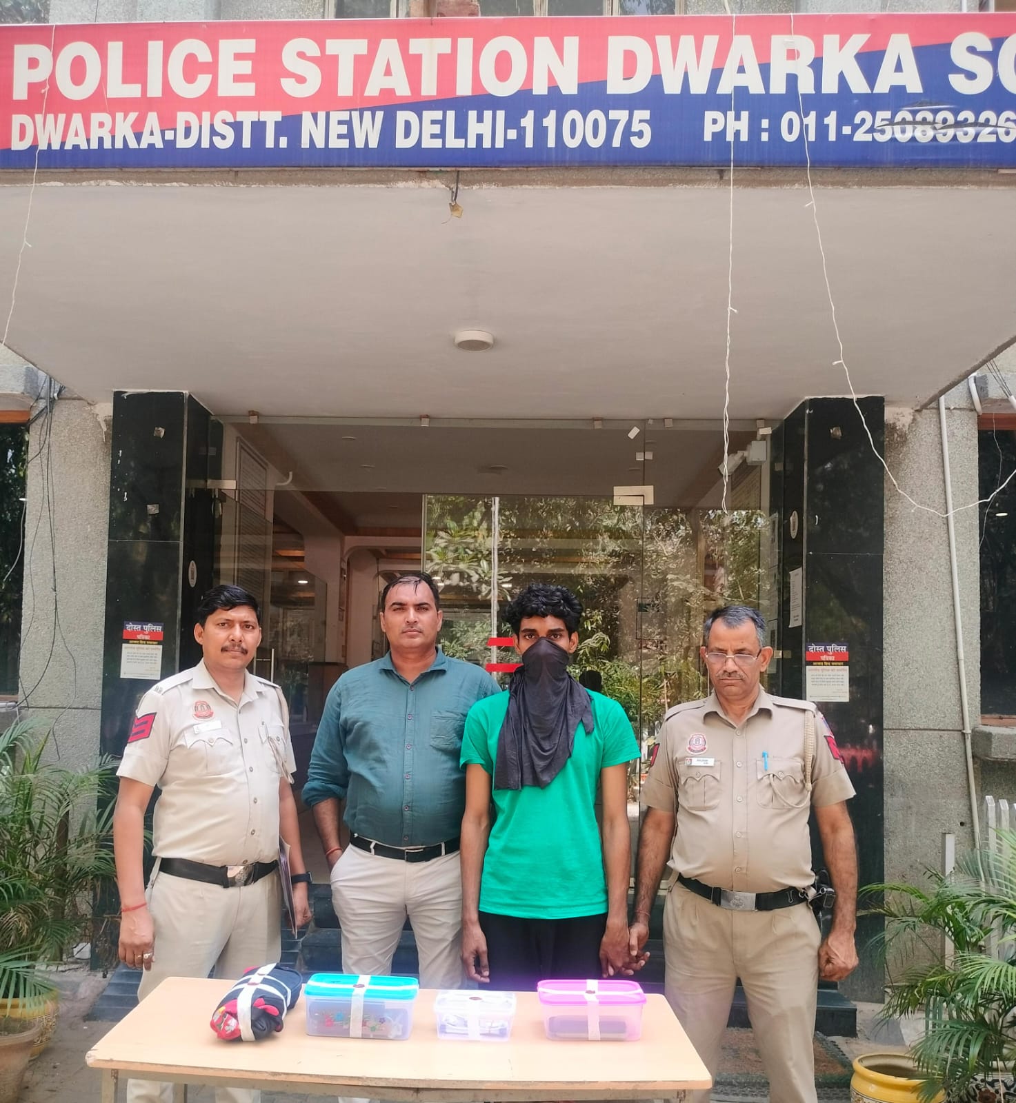 नई दिल्ली: दिल्ली के द्वारका जिले में एक एनआरआई महिला का बैग चुराने वाले आरोपी को पुलिस ने चौबीस घंटे के भीतर गिरफ्तार कर लिया है। आरोपी की पहचान जय भारत एन्क्लेव निवासी 26 वर्षीय आरोपी अंकित के रूप में हुई हैं। द्वारका दक्षिण की टीम ने त्वरित कार्रवाई करते हुए मामले का खुलासा किया और चोरी का सामान बरामद कर लिया।