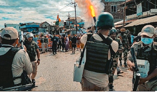 बिष्णुपुर जिले में, महिला प्रदर्शनकारियों ने प्रतीकात्मक प्रतिशोध के तौर पर केंद्रीय बलों के वाहनों पर “मणिपुर और कांगलीपाक” लिखे स्टिकर चिपकाए। कांगलीपाक मणिपुर का पुराना नाम है।