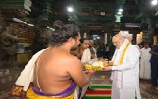 अमित शाह ने तमिलनाडु के मीनाक्षी मंदिर में पूजा-अर्चना की
