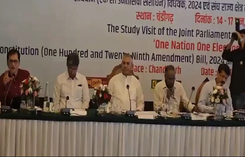 एक राष्ट्र एक चुनाव पर संयुक्त संसदीय समिति (जेपीसी) के अध्यक्ष भारतीय जनता पार्टी (भाजपा) सांसद पीपी चौधरी ने सोमवार को चंडीगढ़ में एक बैठक की। बैठक में वर्तमान में हरियाणा और चंडीगढ़ के क्षेत्रीय और राष्ट्रीय राजनीतिक दलों भाजपा, कांग्रेस, जेजेपी, बसपा, इनेलो और पूर्व मुख्यमंत्रियों के साथ एक राष्ट्र एक चुनाव के मामले पर चर्चा की जा रही है। एक साथ राष्ट्रीय और विधानसभा चुनाव कराने के लिए 129वां संविधान संशोधन विधेयक पिछले साल दिसंबर में लोकसभा में पेश किया गया था। बाद में इसे संयुक्त संसदीय समिति के पास भेज दिया गया।