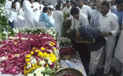 एअर इंडिया विमान हादसे में जान गवाने वाले गुजरात के पूर्व मुख्यमंत्री विजय रूपाणी का सोमवार रात राजकोट में पूरे राजकीय सम्मान के साथ अंतिम संस्कार किया गया। रूपाणी के अंतिम संस्कार से पहले केंद्रीय गृह मंत्री अमित शाह समेत कई नेताओं ने उन्हें पुष्पांजलि अर्पित की। भारतीय जनता पार्टी (भाजपा) के दिवंगत नेता को उनके गृहनगर में अंतिम विदाई देने के लिए मार्ग पर हजारों लोग एकत्रित हुए। रूपाणी का अंतिम संस्कार पूरे राजकीय सम्मान के साथ श्मशान घाट पर किया गया और दिवंगत नेता के सम्मान में उन्हें 21 तोपों की सलामी दी गई।