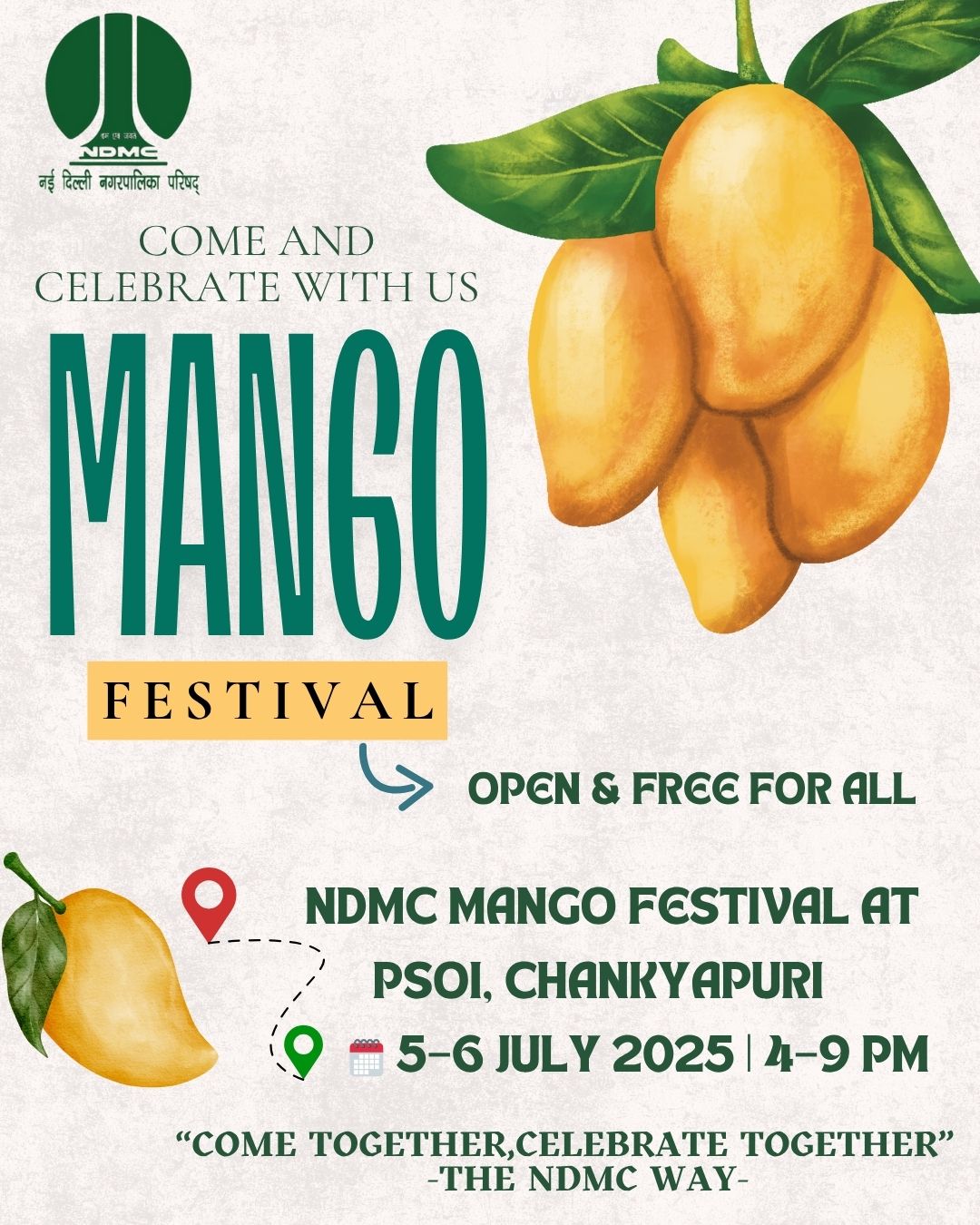 नई दिल्ली: नई दिल्ली नगरपालिका परिषद (एनडीएमसी) 5 और 6 जुलाई 2025 को चाणक्यपुरी के विनय मार्ग पर स्थित पालिका सेवा अधिकारी संस्थान (पीएसओआई) में दो दिवसीय आम महोत्सव का आयोजन करने जा रही है। यह आयोजन दोनों दिन शाम 4:00 बजे से रात 9:00 बजे तक होगा। फलों के राजा आम के इस जीवंत उत्सव में देश भर की विभिन्न आम की किस्मों का स्वाद और खरीदारी का अवसर मिलेगा।
