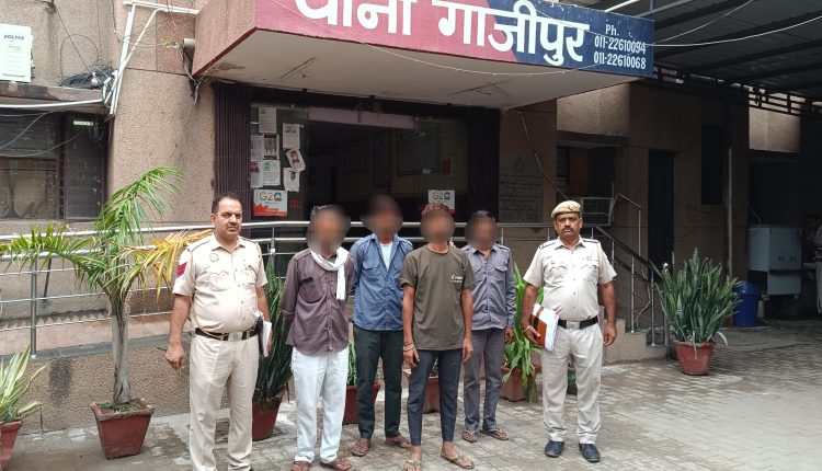 पूर्वी जिला के डीसीपी अभिषेक धनिया ने बताया कि अपराध और अपराधियों के खिलाफ चल रही मुहिम के तहत, गाजीपुर थाने की पुलिस को क्षेत्र में सतर्कता बरतने और अपराध रोकने के निर्देश दिए गए थे। इसके लिए एक विशेष टीम गठित की गई थी। 29 जून को गश्त के दौरान गुप्त सूचना मिली कि गाजीपुर के खोड़ा चौक के पास अंबेडकर चौक पर कुछ लोग जुआ खेल रहे हैं। इस सूचना पर तुरंत कार्रवाई करते हुए पुलिस टीम ने मौके पर पहुंचकर चार संदिग्धों को पकड़ लिया, जो ताश के पत्तों से जुआ खेल रहे थे। तलाशी में उनके पास से 5200 रुपये की दांव राशि और 52 ताश के पत्ते बरामद किए गए। आरोपियों की पहचान खोड़ा कॉलोनी, गाजियाबाद निवासी 28 वर्षीय सुनील, 34 वर्षीय रंजीत, 52 वर्षीय बिजेंद्र पाल और 45 वर्षीय बृजेश के रूप में हुई हैं। इसके आधार पर गाजीपुर थाने में दिल्ली पब्लिक गैंबलिंग एक्ट के तहत मामला दर्ज किया गया।