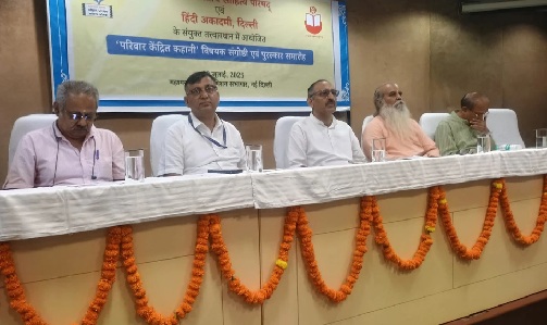 अखिल भारतीय साहित्य परिषद् एवं हिन्दी अकादमी, दिल्ली के संयुक्त तत्वावधान में परिवार केंद्रित कहानी विषयक संगोष्ठी एवं पुरस्कार वितरण समारोह का आयोजन गुरुवार को मालवीय स्मृति भवन, नई दिल्ली में संपन्न हुआ। मुख्य वक्ता के रूप में अखिल भारतीय साहित्य परिषद् के राष्ट्रीय सह संगठन मंत्री मनोज कुमार ने अपने विचार रखते हुए कहा कि आज दुनिया में सर्वाधिक पढ़ी जानेवाली पुस्तकों में रामायण एवं महाभारत अग्रगण्य हैं। इनमें जीवन-मूल्य स्थापित हैं। लेखक दुनिया की सारी भाषाओं में लिखें। नई शैली में लिखें। उन्होंने कहा कि विश्व की सबसे बड़ी कहानी है-महाभारत। यह पारिवारिक संगठन एवं विघटन के परिणाम का दर्शन करवाने वाला ग्रंथ है। मानवता के हित में भारत के विमर्श को विश्व तक पहुंचाना यह साहित्य का उद्देश्य है। जैसे परिवार जोड़ने का काम करता है, वैसे ही भारत विश्व के देशों को जोड़ता है। यदि विश्व साहित्य है, तो भारत कहानी है यानी कहानी का पर्याय है भारत। कहानी की विधा स्वस्थ मनोरंजन के साथ-साथ भारतीय जीवन मूल्यों, भावनाओं, संवेदनाओं, चिंतन एवं विचारों की संवाहक भी है। विशिष्ट वक्ता के नाते इंद्रप्रस्थ साहित्य भारती के कार्यकारी अध्यक्ष डॉ. विनोद बब्बर ने कहा कि परिवार भारतीय संस्कृति का मूल आधार है। यह भारतीय संस्कृति को जीवंत रखने का सशक्त माध्यम है। व्यक्तियों में प्रेम, सहिष्णुता, सद्गुण, संस्कार और नैतिकता का समावेश परिवार से ही होता है। आज के दौर में टूटता परिवार कष्ट का विषय है। अपने वक्तव्य में प्रदेश मंत्री राकेश कुमार ने कहा कि कहानी प्रतियोगिता आरंभ होने के पहले यह संशय था कि बाल कहानीकारों की कहानियां काफी कम संख्या में प्राप्त होंगी क्योंकि ऐसी धारणा बन गई है कि स्मार्ट फोन में सिमटा आज का बालक रील का एक्सपर्ट हो चुका है, लेखन में उसकी रुचि नहीं है किंतु प्रतियोगिता के दौरान भ्रम टूट गया। बाल कहानीकारों की कहानियां अच्छी संख्या में प्राप्त हुईं जो कथा शिल्प, संवाद और कथेतर संदेशों से लबालब था।कार्यक्रम में हिन्दी अकादमी, दिल्ली के सचिव संजय कुमार गर्ग का सान्निध्य प्राप्त हुआ। उन्होंने कहा कि परिवार व्यवस्था संस्कृति एवं संस्कारों का केंद्र है। कार्यक्रम की अध्यक्षता करते हुए इंद्रप्रस्थ साहित्य भारती के अध्यक्ष प्रो. अवनिजेश अवस्थी ने कहा कि विकसित भारत के लिए परिवार सबसे महत्वपूर्ण इकाई है। भारत को विकसित बनाने में लघुतम इकाई परिवार महत्वपूर्ण है जिसके आधार पर ही राष्ट्र का निर्माण संभव हो सकेगा। परिवार से व्यक्ति और समाज में सद्गुणों का समावेश होता है। यह चरित्र निर्माण और राष्ट्र निर्माण की प्राथमिक पाठशाला है।विदित हो कि अखिल भारतीय साहित्य परिषद