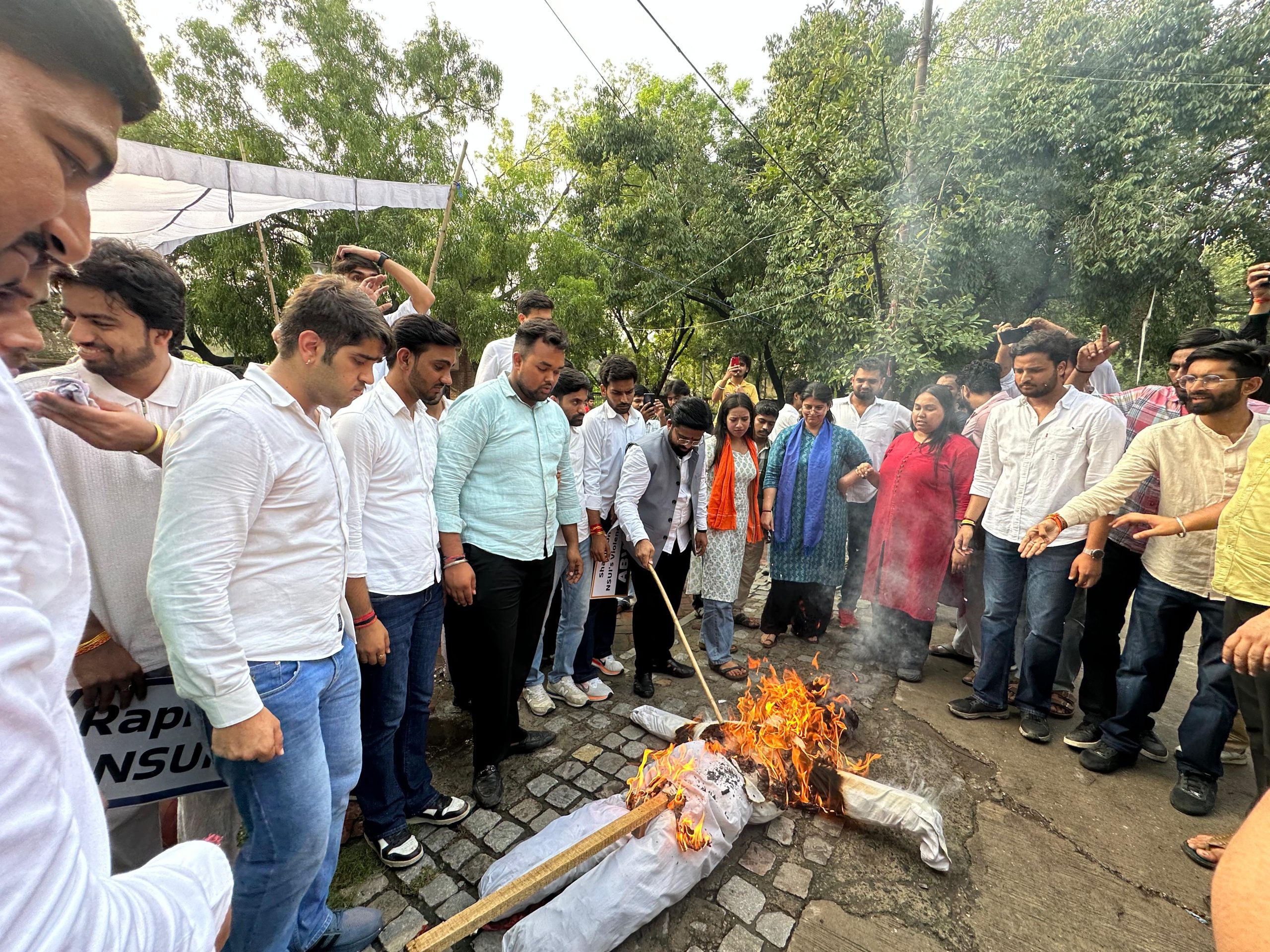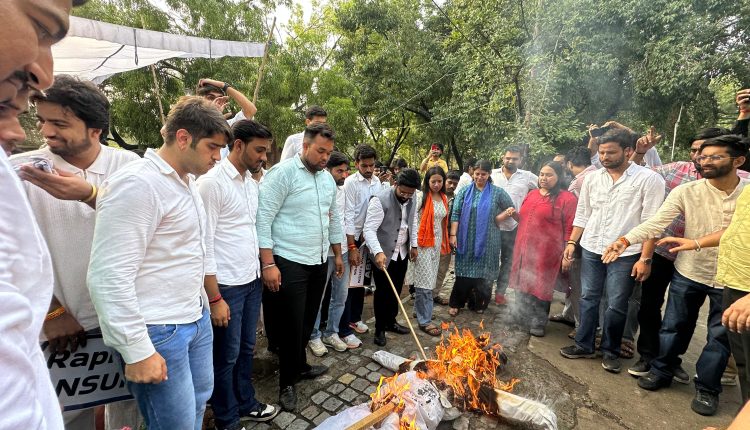 एनएसयूआई अध्यक्ष के खिलाफ एबीवीपी का दिल्ली विश्वविद्यालय में प्रदर्शन, पुतला फूंका