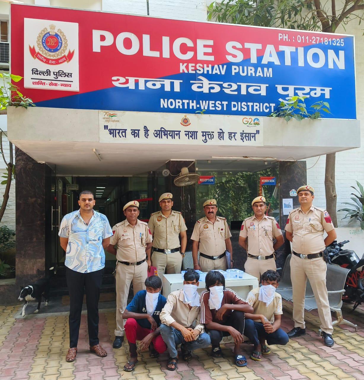 नई दिल्ली: दिल्ली के उत्तर-पश्चिम जिले के त्रिनगर इलाके में हंसापुरी रोड पर एक कोल्ड ड्रिंक होलसेलर की दुकान में हुई सशस्त्र डकैती के मामले को केशवपुरम थाना पुलिस ने सुलझा लिया है। पुलिस ने चार शातिर लुटेरों को गिरफ्तार कर उनके कब्जे से एक देसी कट्टा, दो जिंदा कारतूस, दो चाकू और अपराध में इस्तेमाल की गई चोरी की मोटरसाइकिल बरामद की है। इस कार्रवाई से न केवल डकैती का मामला सुलझा, बल्कि एक छिनैती और एक वाहन चोरी का मामला भी हल हो गया है।