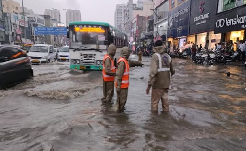उन्होंने अधिकारियों को बाढ़ प्रभावित कॉलोनियों में जल निकासी व्यवस्था में सुधार करने के निर्देश दिए ताकि आगे जलभराव न हो। अपने बुलेटिन में आईएमडी ने रविवार से 17 अगस्त की सुबह साढ़े आठ बजे तक ‘भारी बारिश’ का पूर्वानुमान व्यक्त किया है।साथ ही 13 अगस्त की सुबह साढ़े आठ बजे से 17 अगस्त की सुबह साढ़े आठ बजे के बीच अलग-अलग स्थानों पर ‘भारी से बहुत भारी बारिश’ की चेतावनी भी दी है। विभाग ने बताया कि रविवार को दोपहर एक बजे से 13 अगस्त को सुबह साढ़े आठ बजे तक राज्य के कुछ स्थानों पर बिजली चमकने और तेज हवाएं (30 से 40 किलोमीटर प्रति घंटे की रफ्तार से) चलने की संभावना है।ग्रेटर हैदराबाद नगर निगम (जीएचएमसी) ने सोशल मीडिया मंच ‘एक्स’ पर एक पोस्ट में कहा कि रविवार रात नौ बजे तक शहर के कुछ हिस्सों में मध्यम से भारी बारिश और गरज के साथ छींटे पड़ने की संभावना है, जबकि कुछ क्षेत्रों में 30 से 50 मिलीमीटर तक बारिश होने के आसार हैं।तेलंगाना की दैनिक मौसम रिपोर्ट के अनुसार, हैदराबाद में शनिवार रात भारी बारिश हुई जिससे कई जगहों पर जलभराव हो गया। शहर में सबसे अधिक बारिश अंबरपेट में हुई जहां 11 सेंटीमीटर बारिश दर्ज की गई, जबकि हिमायतनगर में 10 सेंटीमीटर बारिश हुई। पिछले कुछ दिनों से हैदराबाद और राज्य के अन्य हिस्सों में भारी बारिश हो रही है।