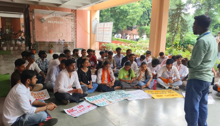 शिवाजी कॉलेज में एबीवीपी का जोरदार प्रदर्शन, 1 लाख के चुनावी बॉन्ड और फीस वृद्धि के खिलाफ उठी आवाज