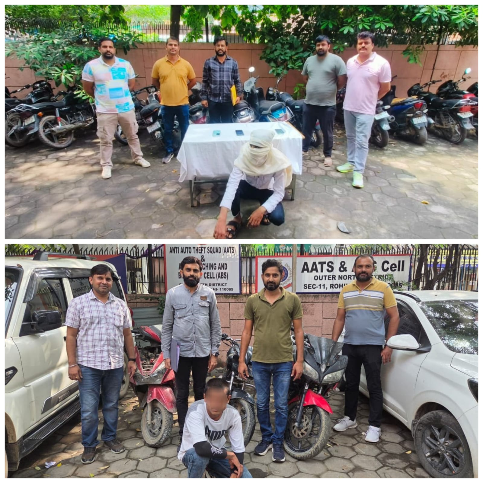 बाहरी उत्तरी जिला के डीसीपी हरेश्वर स्वामी ने बताया कि शुक्रवार की रात को जिला पुलिस की एएटीएस और एबीएस सेल की रिपोर्ट पर, इंस्पेक्टर प्रमोद तोमर के नेतृत्व में तकनीकी निगरानी और मानव खुफिया जानकारी के आधार पर कार्रवाई की। इस ऑपरेशन में एसआई रोहित, एसआई विशाल, एएसआई संदीप, एएसआई अनिल आमिर, एचसी नवीन कुमार, एचसी जयदीप, एचसी अतुल, एचसी संजय, एचसी सतेंद्र, एचसी दिनेश, एचसी रॉबिन, एचसी नवीन और एचसी प्रदीप की टीम ने एसीपी के निर्देश दिनेश कुमार और डीसीपी हरेश्वर स्वामी की दो अलग-अलग मामलों में कार्रवाई की। इस कार्रवाई में नरेला निवासी सरफराज और सिरसपुर निवासी अंकित उर्फ चिकना को गिरफ्तार किया गया। सरफराज के कब्जे से 5 चोरी के दोपहिया वाहन और 4 चोरी के मोबाइल फोन बरामद किए गए। अंकित समयपुर बादली थाने का घोषित बदमाश है। इसके कब्जे से 3 चोरी के दोपहिया वाहन बरामद किए गए।
