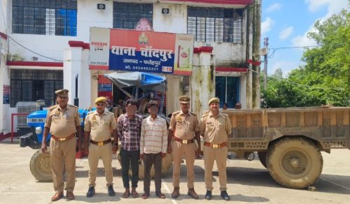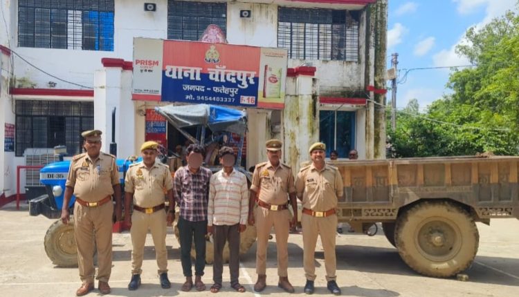 फतेहपुर|पुलिस अधीक्षक फतेहपुर अनूप कुमार सिंह के निर्देशन में वांछित/वारण्टियों की गिरफ्तारी व अपराध एवं अपराधियों पर प्रभावी नियंत्रण हेतु चलाये जा रहे अभियान के क्रम में दिनांक 02.09.2025 को थाना चांदपुर पुलिस द्वारा चेकिंग के दौरान 02 शातिर चोर क्रमशः 1. अभियुक्त सुजीत यादव पुत्र रमेश उर्फ कल्लू यादव निवासी ग्राम मदरी थाना चांदपुर जनपद फतेहपुर उम्र करीब 21 वर्ष, 2. अभियुक्त आशीष शुक्ला पुत्र प्रताप नारायण शुक्ला नि0 ग्राम सरहन खुर्द थाना चांदपुर जनपद फतेहपुर उम्र करीब 20 वर्ष को चोरी की 01 अदद ट्रेक्टर ट्रॉली( कीमत करीब 08 लाख रु0) सहित गिरफ्तार किया गया ।