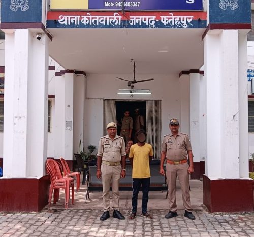 फतेहपुर|पुलिस अधीक्षक फतेहपुर अनूप कुमार सिंह के निर्देशन में वांछित/वारण्टियों की गिरफ्तारी व अपराध एवं अपराधियों के विरुद्ध चलाये जा रहे अभियान के क्रम में दिनांक 02.09.2025 को थाना कोतवाली पुलिस द्वारा चेकिंग के दौरान शातिर चोर अभियुक्त जय सिंह उर्फ ओम सिंह उर्फ कौवा पुत्र शिवप्यारे सिंह निवासी धरमपुर जोनिहा रोड चौकी सहेली थाना मलवां फतेहपुर उम्र करीब 29 वर्ष को गिरफ्तार किया गया ।