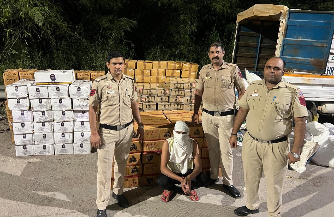 चारे के बैग में छिपाई थी शराब, दिल्ली पुलिस ने टेम्पो समेत तस्कर को दबोचा, 185 पेटी शराब बरामद