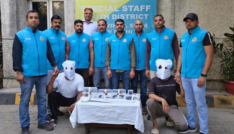 नई दिल्ली: दिल्ली पुलिस की दक्षिण जिला इकाई ने अवैध हथियारों के नेटवर्क को ध्वस्त करने में बड़ी सफलता हासिल की है। विशेष स्टाफ की एक टीम ने गुप्त सूचना और सोशल मीडिया निगरानी के आधार पर दो कुख्यात अपराधियों, दीपक उर्फ गांजा और मोहम्मद उमर उर्फ साबलू, को गिरफ्तार किया। इनके पास से एक देसी पिस्तौल, दो सेमी-ऑटोमैटिक पिस्तौल, आठ जिंदा कारतूस और एक तलवार बरामद की गई।