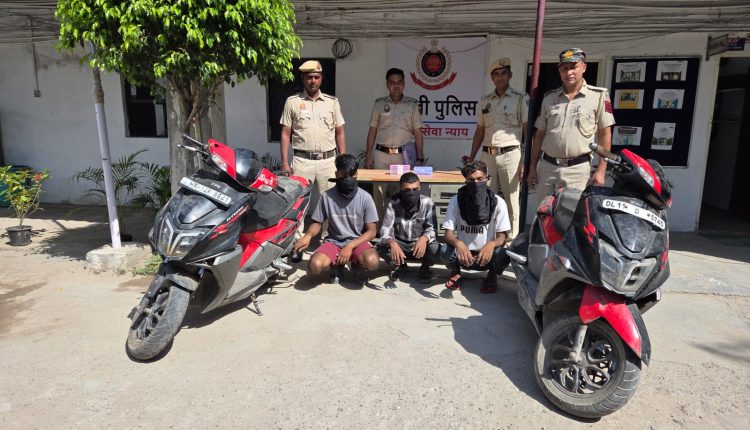 नई दिल्ली: दिल्ली के निहाल विहार इलाके में हुई सनसनीखेज डकैती की वारदात को पुलिस ने मात्र 10 घंटे में सुलझा लिया। निहाल विहार पुलिस स्टेशन की टीम ने त्वरित कार्रवाई करते हुए एक नाबालिग सहित चार बदमाशों को गिरफ्तार किया। इस कार्रवाई में चोरी का मोबाइल फोन, एक बटन वाला चाकू और दो चोरी की स्कूटी बरामद की गईं। पुलिस ने इस मामले में चार अलग-अलग आपराधिक मामलों को सुलझाने का दावा किया है।