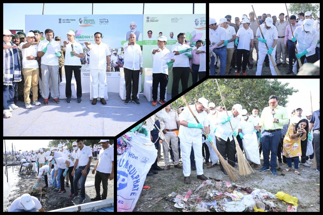 नई दिल्ली: स्वच्छता को लेकर महात्मा गांधी के सपनों को साकार करने की दिशा में एक और कदम बढ़ाते हुए, केंद्रीय जल शक्ति मंत्री सी.आर. पाटिल और जल शक्ति राज्य मंत्री वी. सोमनना के नेतृत्व में गुरुवार को दिल्ली के कलिंदि कुंज, यमुना घाट पर ‘स्वच्छता ही सेवा 2025’ अभियान के तहत ‘एक दिन, एक घंटा, एक साथ’ श्रमदान का भव्य आयोजन किया गया। सुबह 8:00 से 9:00 बजे तक चले इस कार्यक्रम में हजारों लोगों ने हिस्सा लिया और यमुना घाट से लगभग 2500 किलो कचरा एकत्र कर स्वच्छता का संदेश दिया।