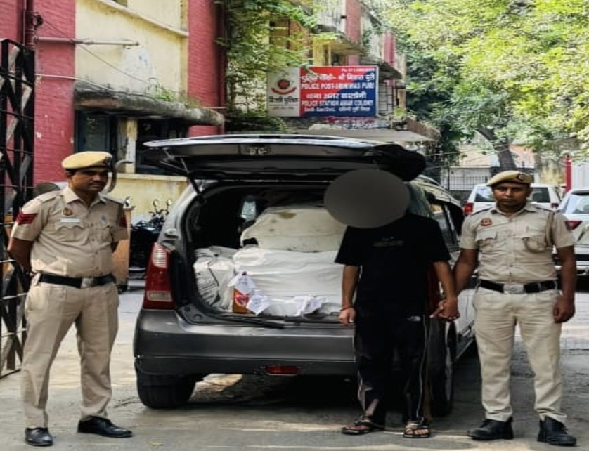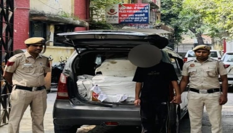 श्रीनिवासपुरी में पुलिस का छापा, शराब तस्कर धराया, लाखों की अवैध शराब और कार जब्त