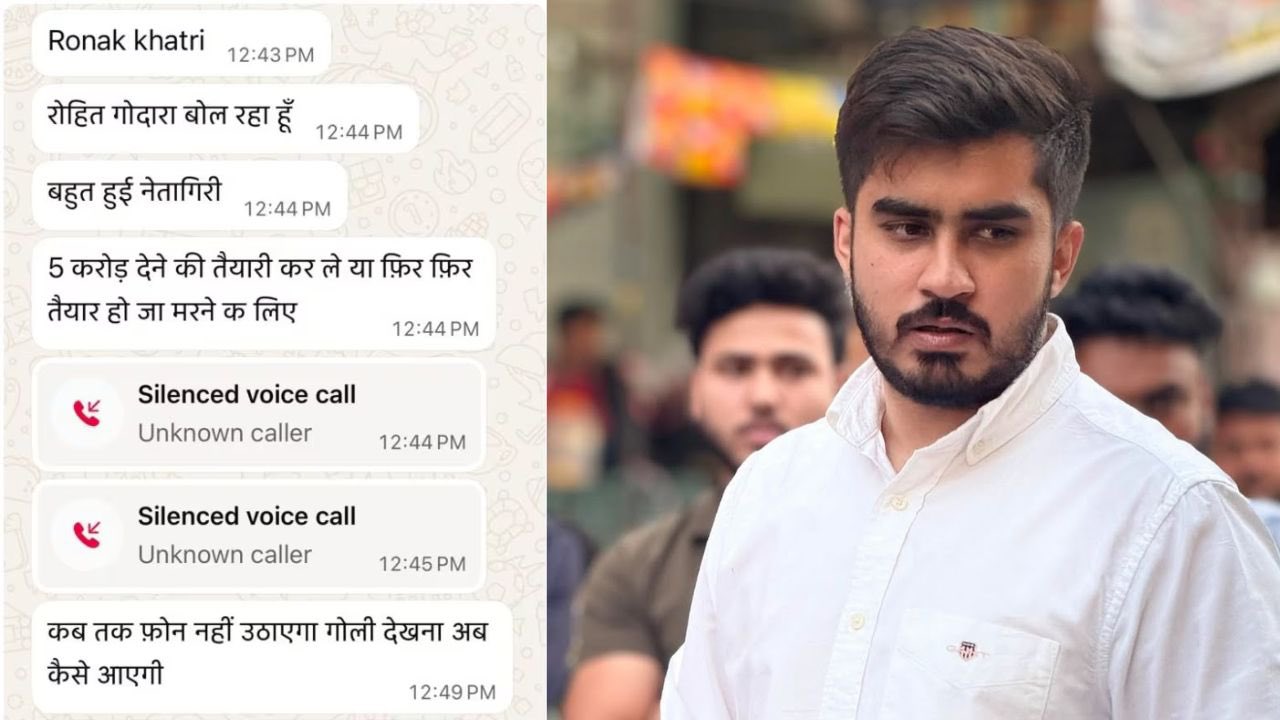 डूसू पूर्व अध्यक्ष रौनक खत्री को 5 करोड़ की रंगदारी की धमकी: ‘नेतागिरी बंद कर, पैसे भेज वरना गोली मार देंगे’
